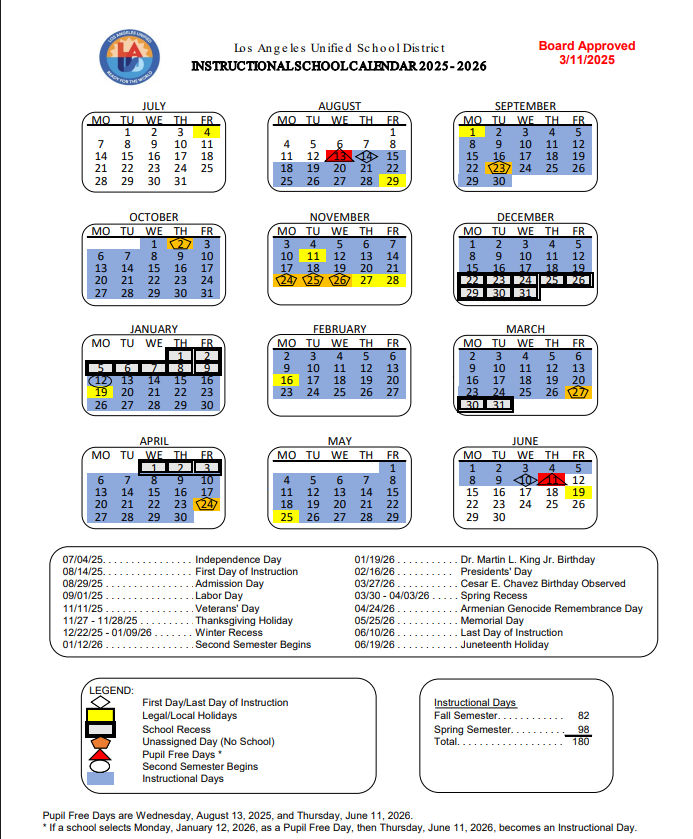 School Instructional Calendar